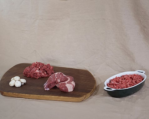 We have 2 sizes of meat boxes available, 5kg or 10kg. If you prefer to choose exactly which items you order, we also have a separate selection of beef.
