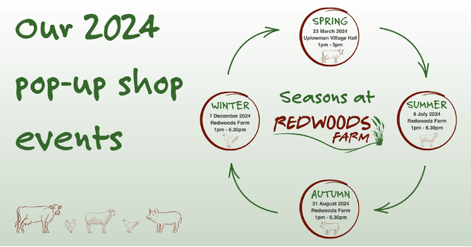 There'll be hot food (featuring Redwoods produce of course!), drinks, local artisan stalls and fun for all the family. You can chat with us and buy our regeneratively raised produce as well as supporting other local, sustainable businesses.