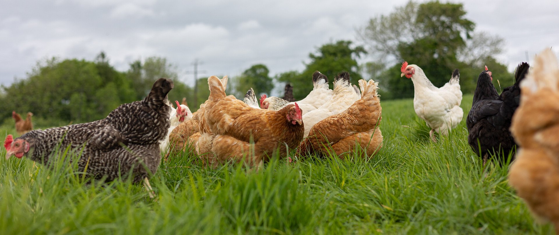 The tasty eggs our laying hens produce have deep orange yolks which are the result of their varied diet and unlimited access to grass.