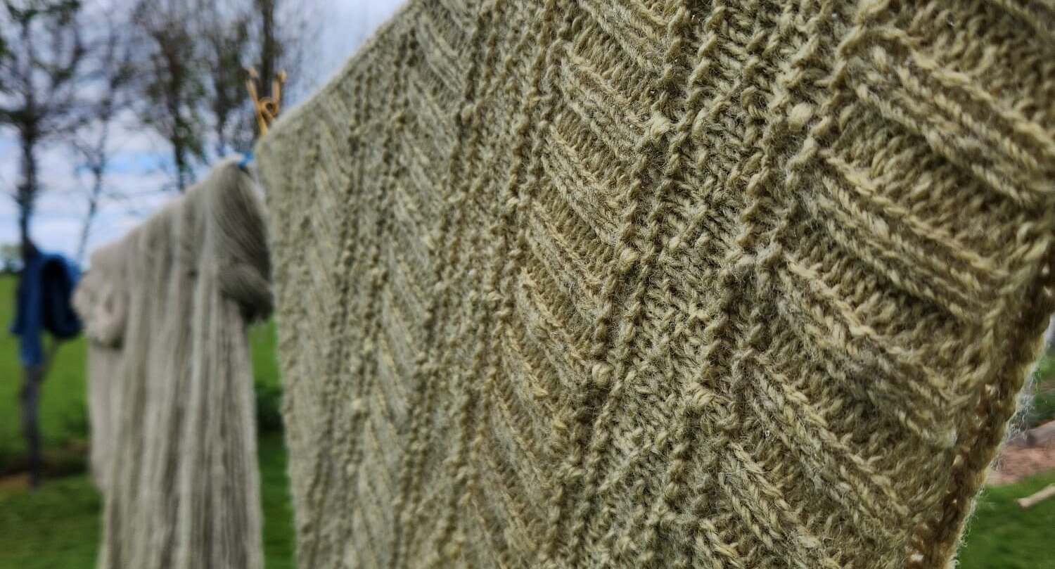 Suzie dyes our fibre, using plants she's grown herself or foraged for - or waste products from cooking such as onion skins. The results are gentle tones of greens, oranges, yellows, browns and greys. The beauty of the natural world captured into our fibre.